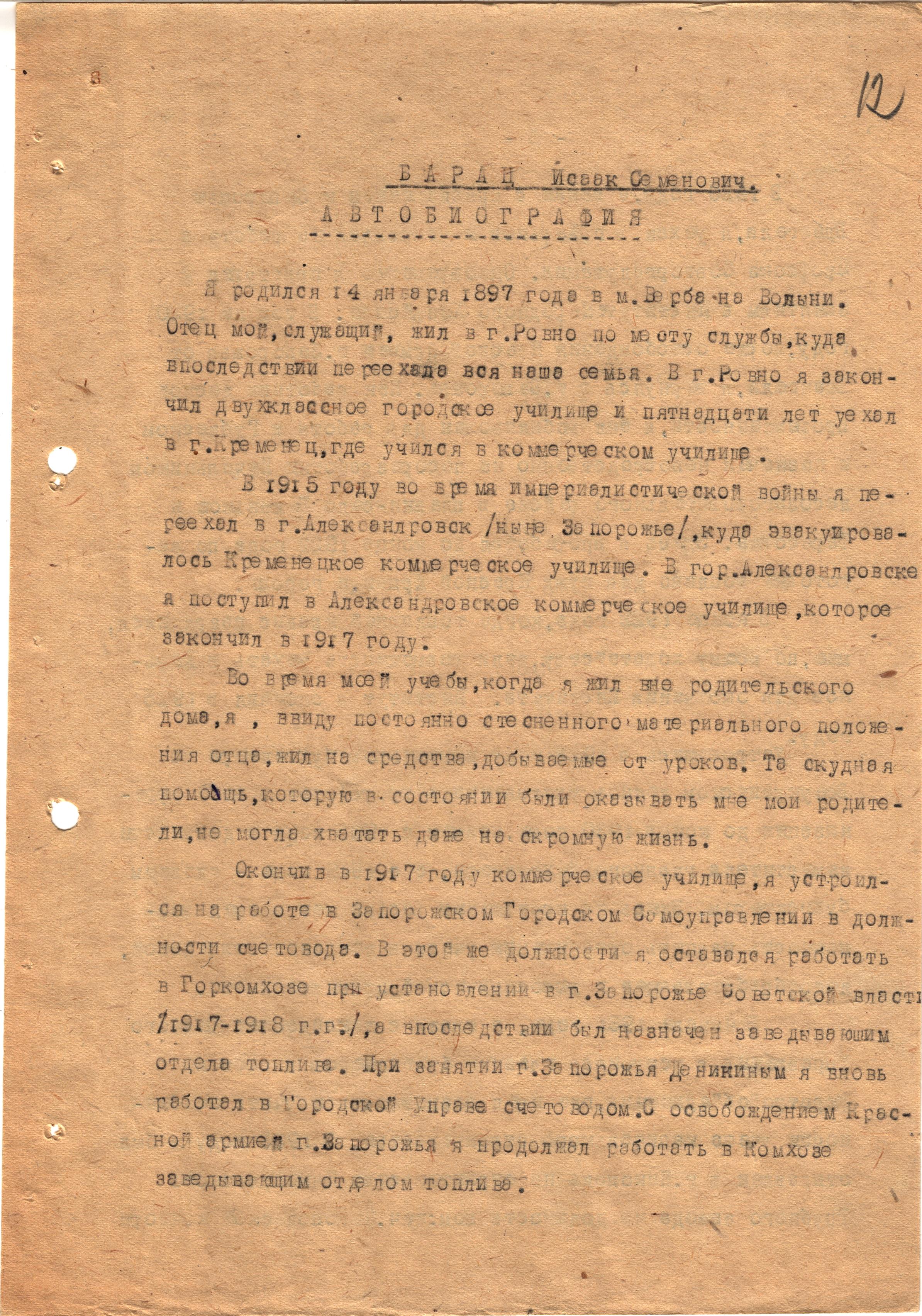 Исаак Семенович Барац родился в местечке Верба на Украине в бедной и многодетной еврейской семье. До 15 лет жил с семьей в г. Ровно. Потом учился в Коммерческом училище в г. Кременце, в 1917 г. закончил Коммерческое училище в г. Александровске (Запорожье). В 1920–1925 гг. учился в Институте народного хозяйства в Харькове. В 1923–1933 гг. работал бухгалтером во Всеукраинском лесном управлении и в разных трестах. Параллельно с 1927 г. преподавал. С 1933 г. целиком посвятил себя научно-педагогической деятельности. Кандидат экономических наук, заведовал кафедрой, был деканом факультета в Харьковском инженерно-экономическом институте. Отец двоих сыновей. Воспоминания «Пути-дороги» (в трех частях) о своей юности, адресованные брату и сестре, писал в 1970-х гг.